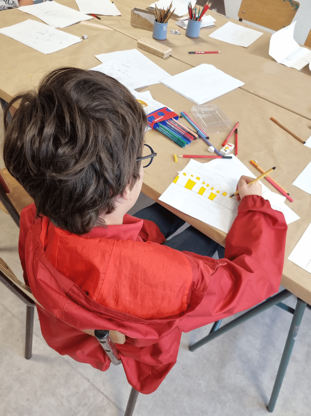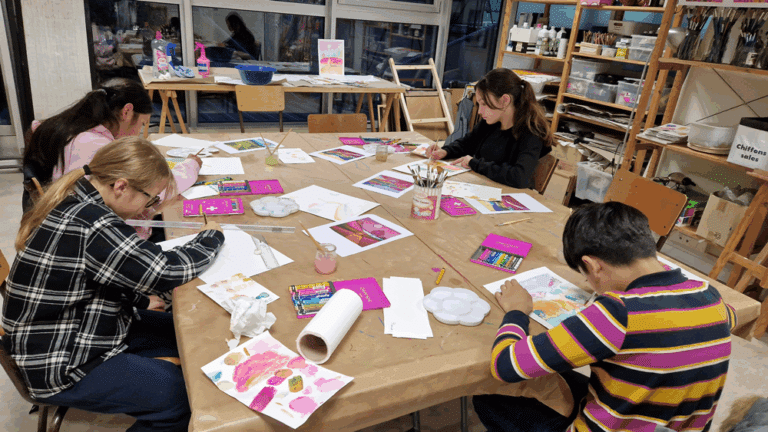 Les ateliers du mardi proposent aux enfants de créer tout en expérimentant différentes approches d’expression artistiques. Au programme : dessin, peinture, mais aussi collage, techniques d’impression, travail du textile (tissage, broderie) et bien d’autres découvertes !