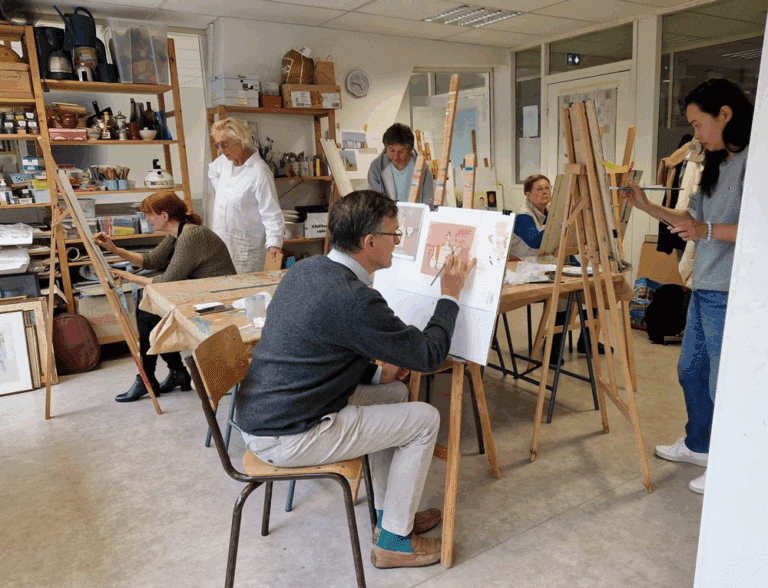 Dessin, pastel, peinture à l’huile, acrylique, aquarelle, collages, techniques mixtes,… à découvrir ou à perfectionner selon sa sensibilité.